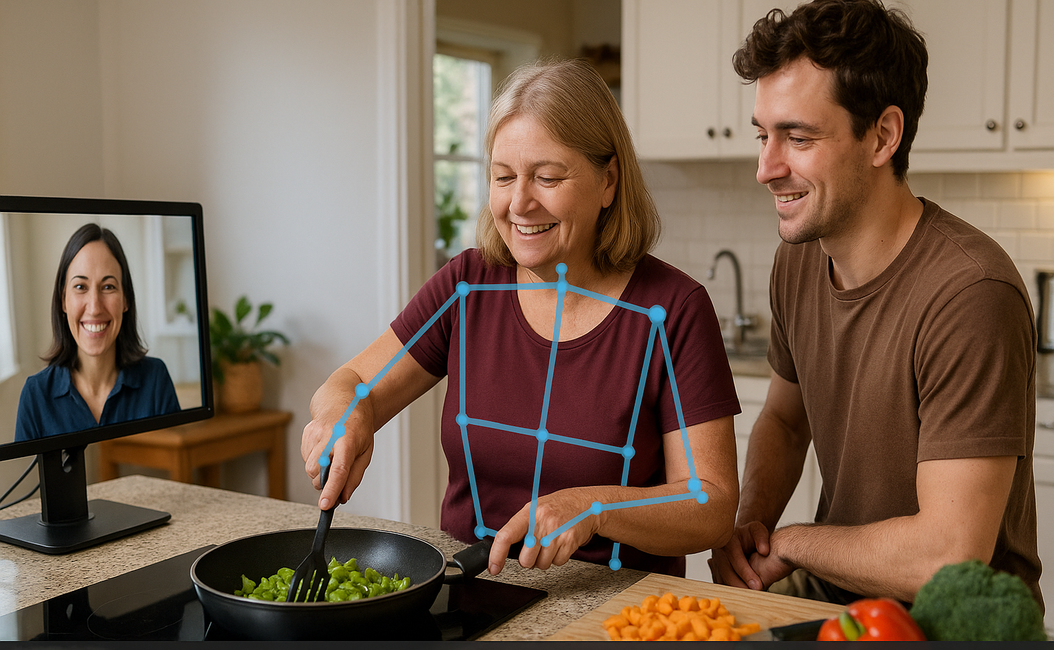 To personalise rehabilitation, we partner with survivors and their family to select valued activities to work on together with the best-evidence therapy for that person and activity. Using a co-learning approach, we guide the person to improve in their chosen activity. Therapy delivered in the home is supported by AI and computer vision images to better understand how a person is moving, performing their chosen activities, and recovering.